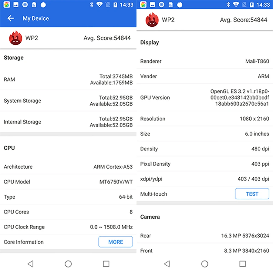 Oukitel WP2 Main Features2 OS : Android 8.0 Language: Multi-language CPU: MT6750T Octa Core Screen Size: 6.0 inch GPU: Mali-T860-MP2 1.5GHZ Resolution: 2160*1080 HD Storage: 4GB RAM 64GB ROM Front Camera: 8.0MP Storage Extend: 128GB Rear Camera: 16.0MP+2.0MP Battery:10000mAh SIM Card:Dual SIM Card Features: 10000mAh battery, Calculators, alarm clock, calendar, recorder, Fingerprint, OTG, etc.... Network: 2G: GSM : 850/900/1800/1900 MHz 3G: WCDMA:900/2100 MHz 4G: FDD-LTE :B1/B3/B7/B8/B20 MHz Package: 1 x OUKITEL WP2 Phone 1 x 10000mAh Battery 1 x USB Cable 1 x Charger 1 x User Manual