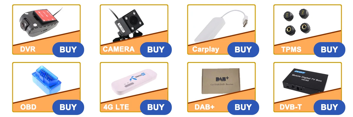 1.Support DVR Function :Support DVR for the front,it will let your journey more safety.2.Support External DAB Receiver (Operate by Toush Screen) 3.Support TV:can support DVB-T2/ISDB-T,with our DVB-T2/ISDB-T box and connector,you can operate on our car DVD screen4.Support the rear view camera,when you reversing the car it will work automatically,it can display the revering track.5,Support TPMS: detect car tire pressure at any time, protect driving safety